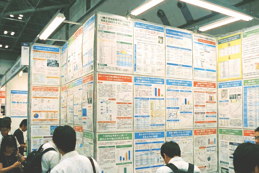 「狭いからこそ、壁の隙間をすべて埋めなきゃ!」と焦り、壁一面に文字だらけのA1パネルやポスターを隙間なく貼り付けるパターンです。来場者は歩きながらわずか3秒でブースを判断します。文字だらけの壁面は「読むのが面倒くさい」と敬遠され、結果として「何屋なのか全く伝わらない」という悲劇を生みます。