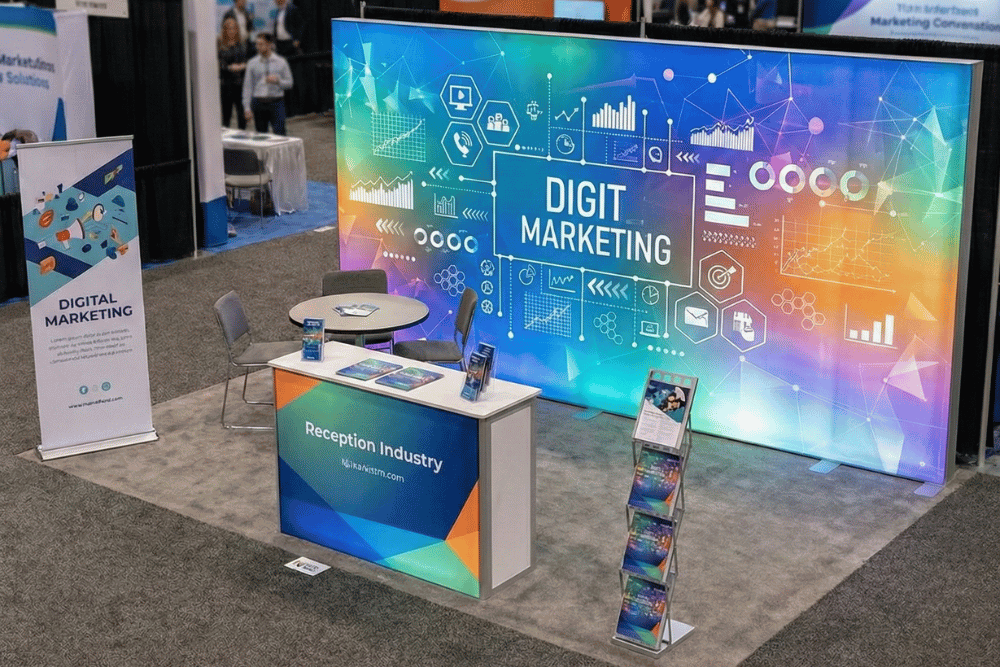 ここで注意すべきは、会場レンタルの無機質な長机やパイプ椅子をそのまま使わないこと。手作り感が出てしまい、企業ブランドが安っぽく見えてしまいます。机には「防炎テーブルクロス」を被せ、受付には「内照式カウンター」を設置するなど、空間全体のトータルコーディネートを意識することが成約率を高める鍵です。